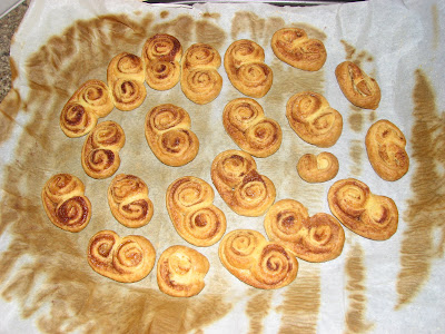 Desenrolei a massa folhada, polvilhei com açúcar e canela.